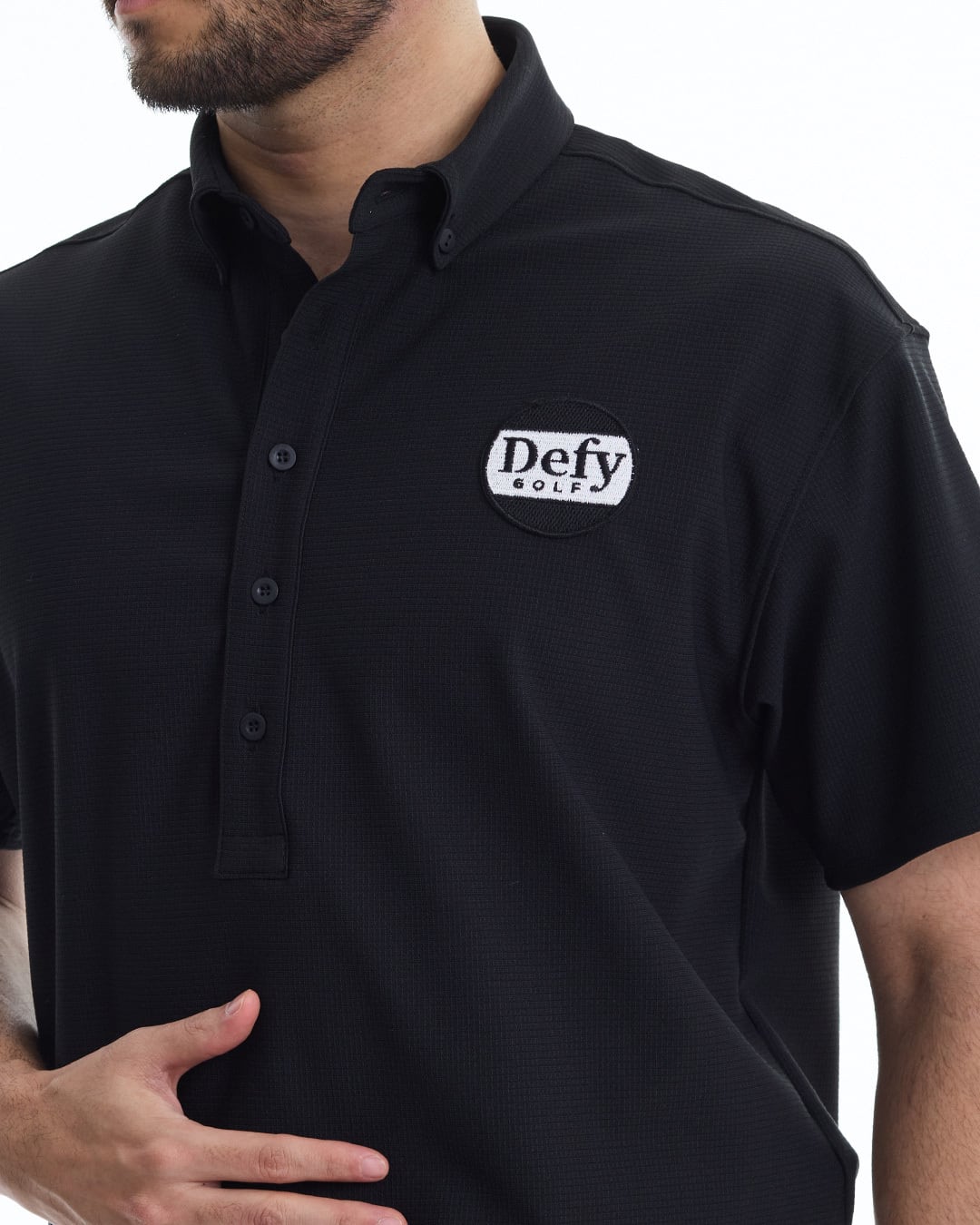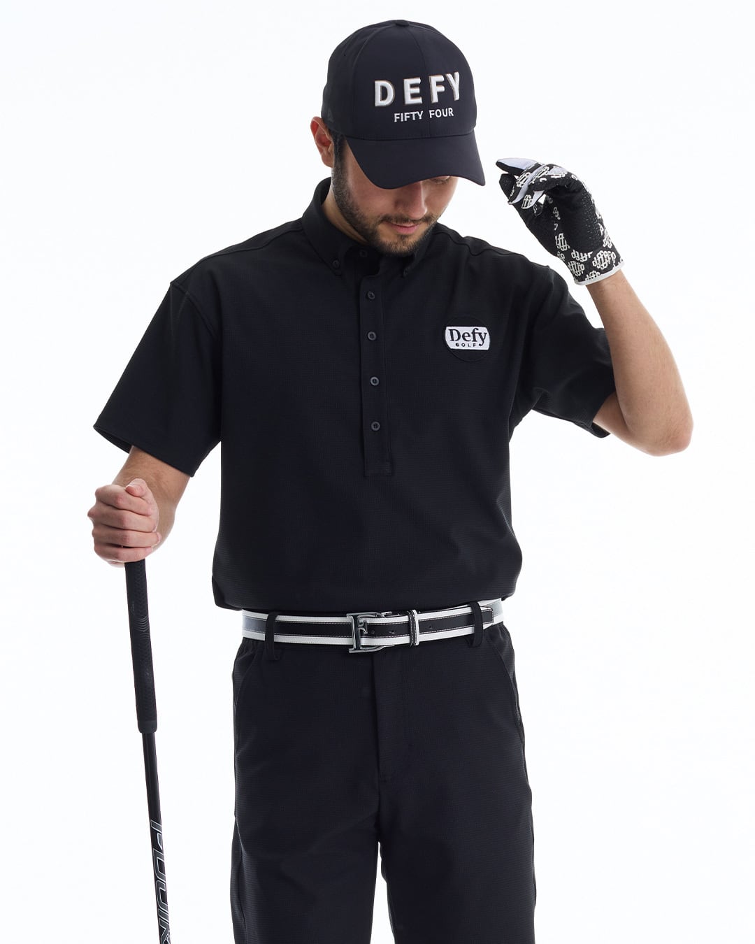ハイゲージの特殊メッシュ素材を使用した2WAY ストレッチ半袖ボタンダウンシャツ。前立て部位が深めの為、ポロシャツなどとはまた違った雰囲気となる。キックバックの強いポリウレタンと交編することにより、タテヨコ共にストレッチ性が高く、透け感も少ない機能素材。吸水速乾性にも優れ、紫外線遮蔽率も高い為、暑い夏にも最適な一枚。同素材ショートパンツ(DFF1E05I)・半袖モックネックDFF1E03I)あり。セットアップ対応商品。