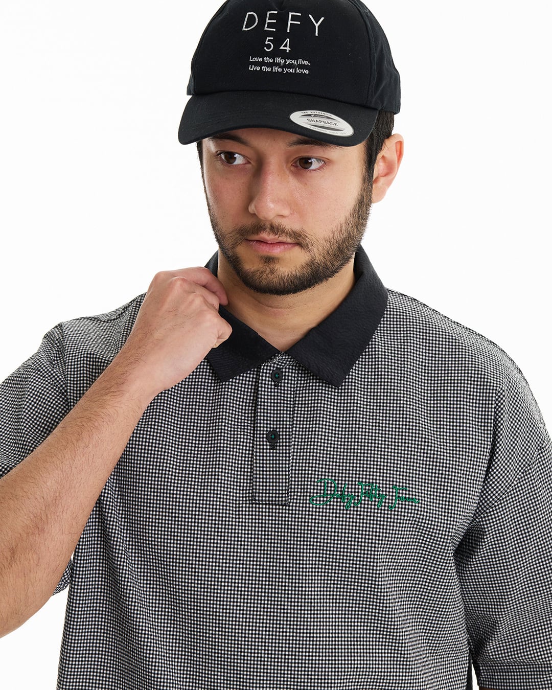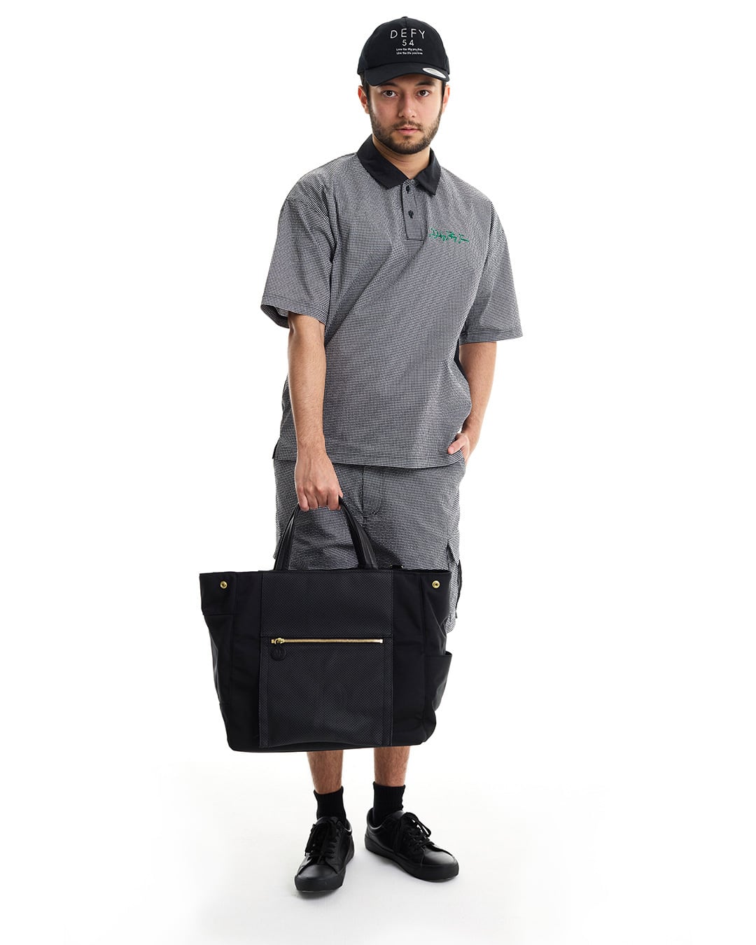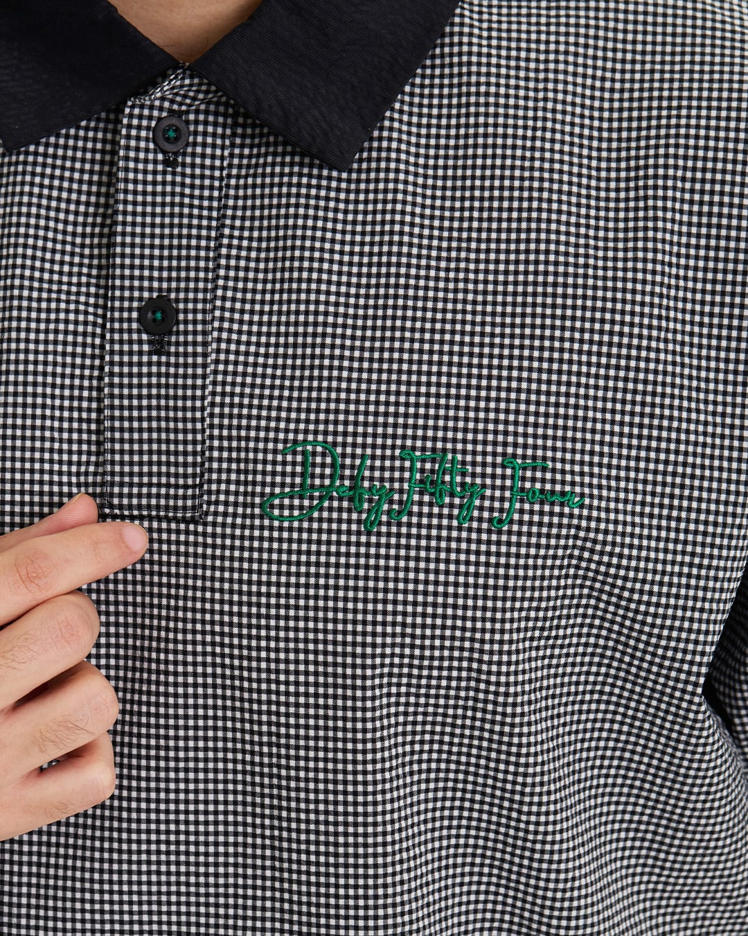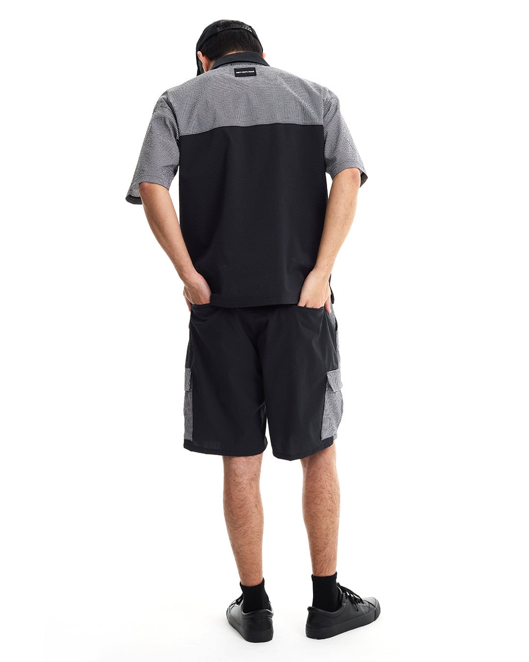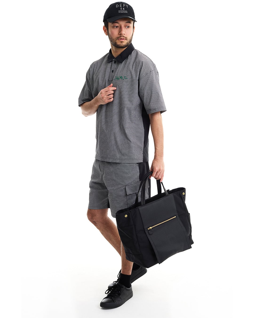 COOLMAX®インビスタ社商標(コアテクノロジーにより涼しくドライな着心地を提供しパフォーマンスを引き出す。)サッカー素材を使用した、ギンガム配色ショートスリーブシャツ。クールマックスの機能性と凹凸感のあるサッカー素材を使用している為、快適な着心地。セットアップカーゴショートパンツ(DFF1E17I)との着用により、より綺麗目にゆったりとしたゴルフスタイルを提案。