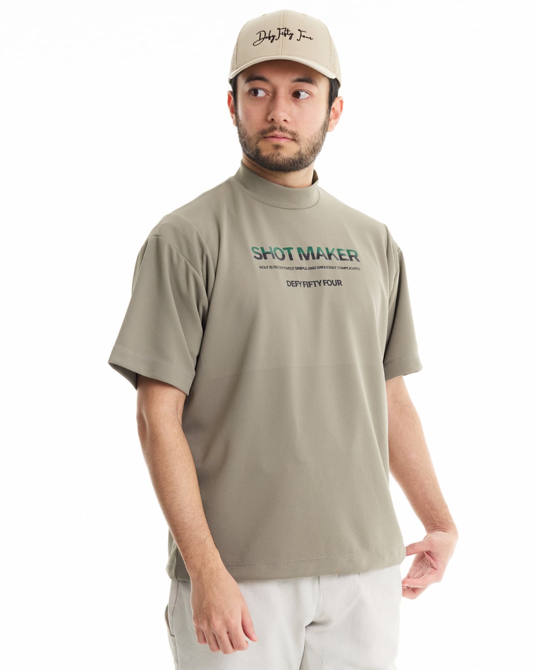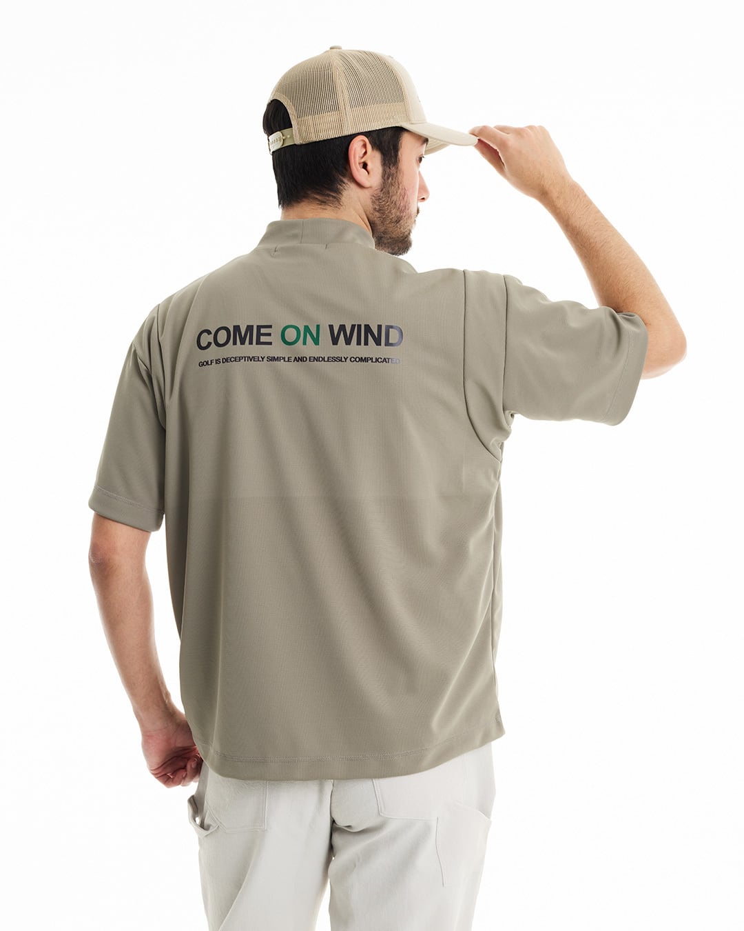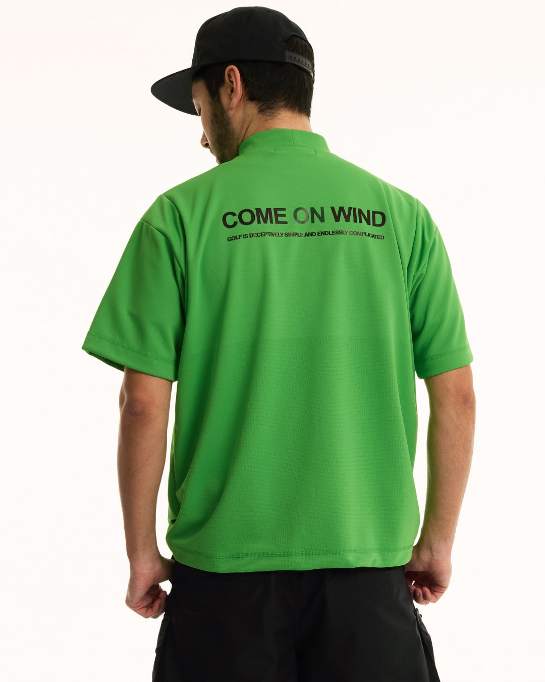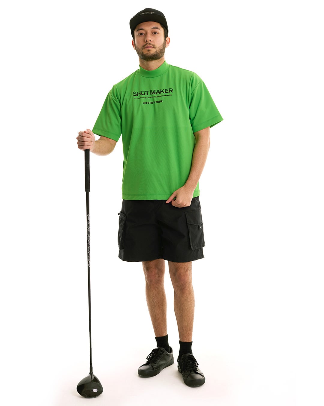セオαUV糸(吸水速乾・UVカット)とキュプラベンベルグ(コットンリンターを原料とする再生セルロース繊維)を使用した、高性能機能素材のショートスリーブモックネック。袖肩部位に切替を入れることにより、腕の上下の際にも全く窮屈さを感じさせず、身幅もゆったりとしたシルエットの為、体のラインを気にせず着用できる一枚。吸水速乾性・吸放湿性・UVケア性・防透け性に優れ、着用時のべたつき感もなく、接触冷感性も併せ持つ、春夏に最適な一枚。