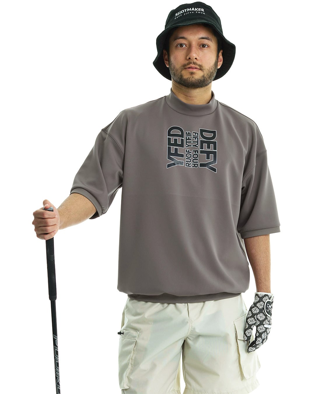 シワになりにくいストレッチジャージを使用した半袖モックネック。袖口、裾部位にはリブを使用。ゆったりとしたシルエットの為、体のラインを気にせず着用出来る一枚。