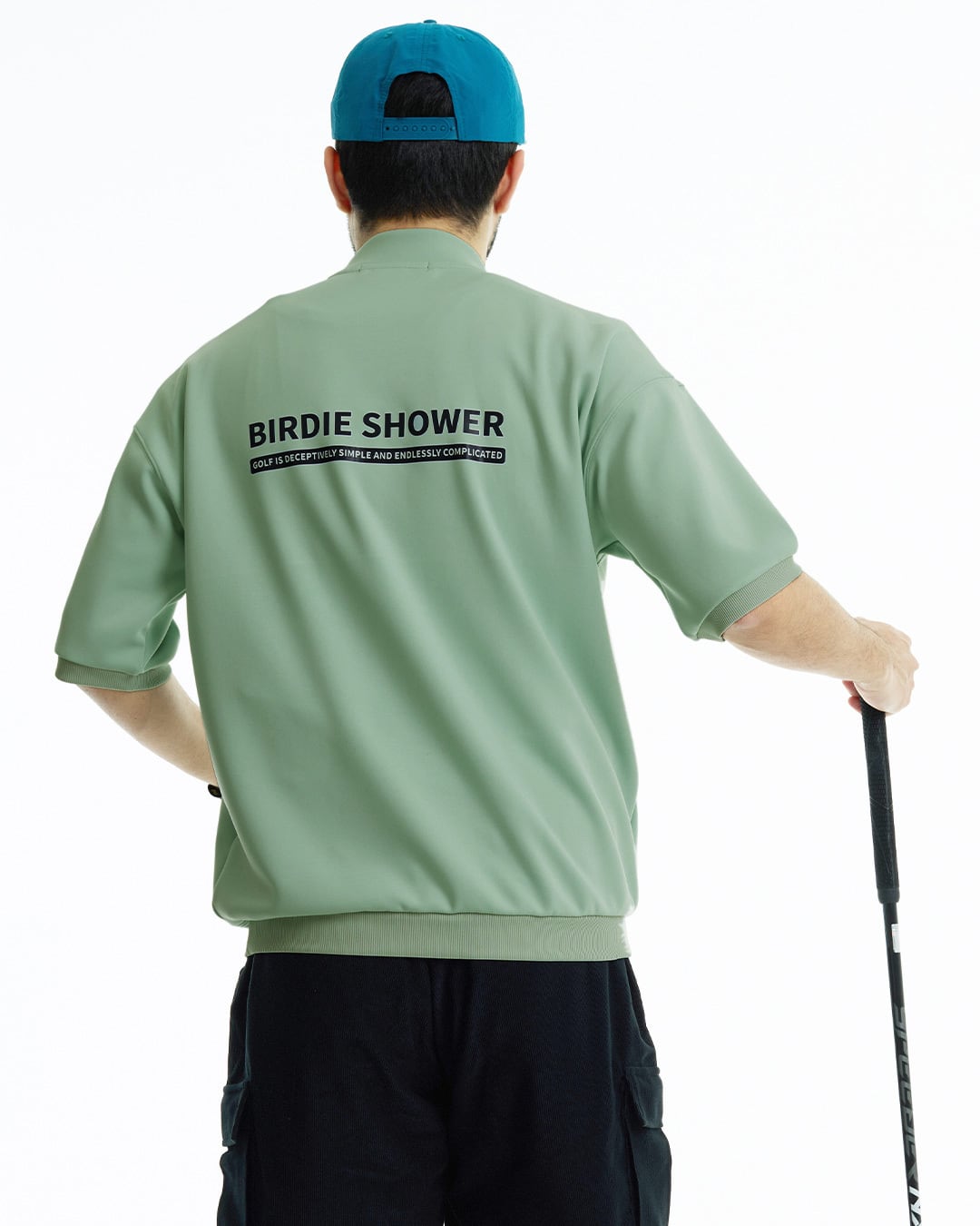 シワになりにくいストレッチジャージを使用した半袖モックネック。袖口、裾部位にはリブを使用。ゆったりとしたシルエットの為、体のラインを気にせず着用出来る一枚。