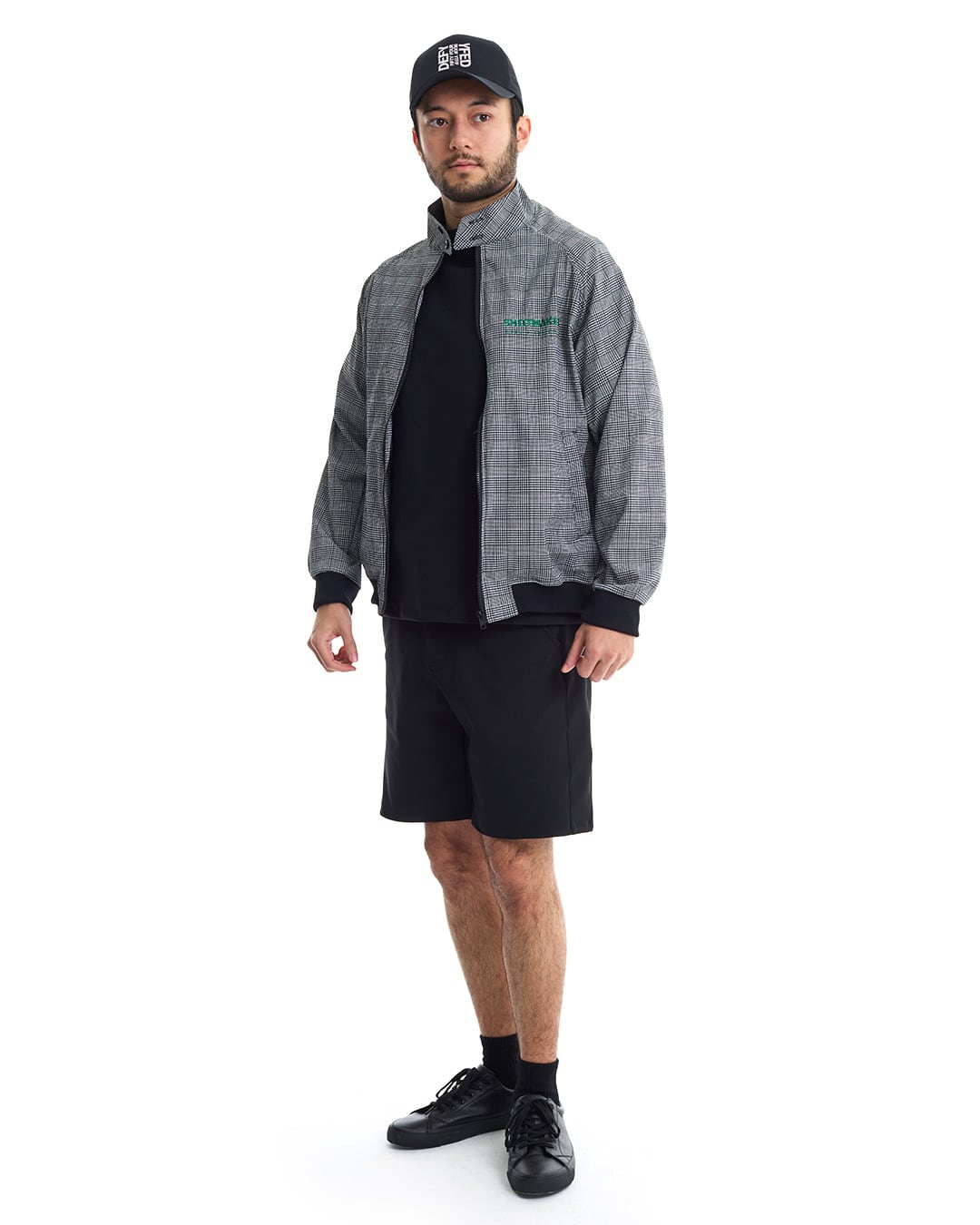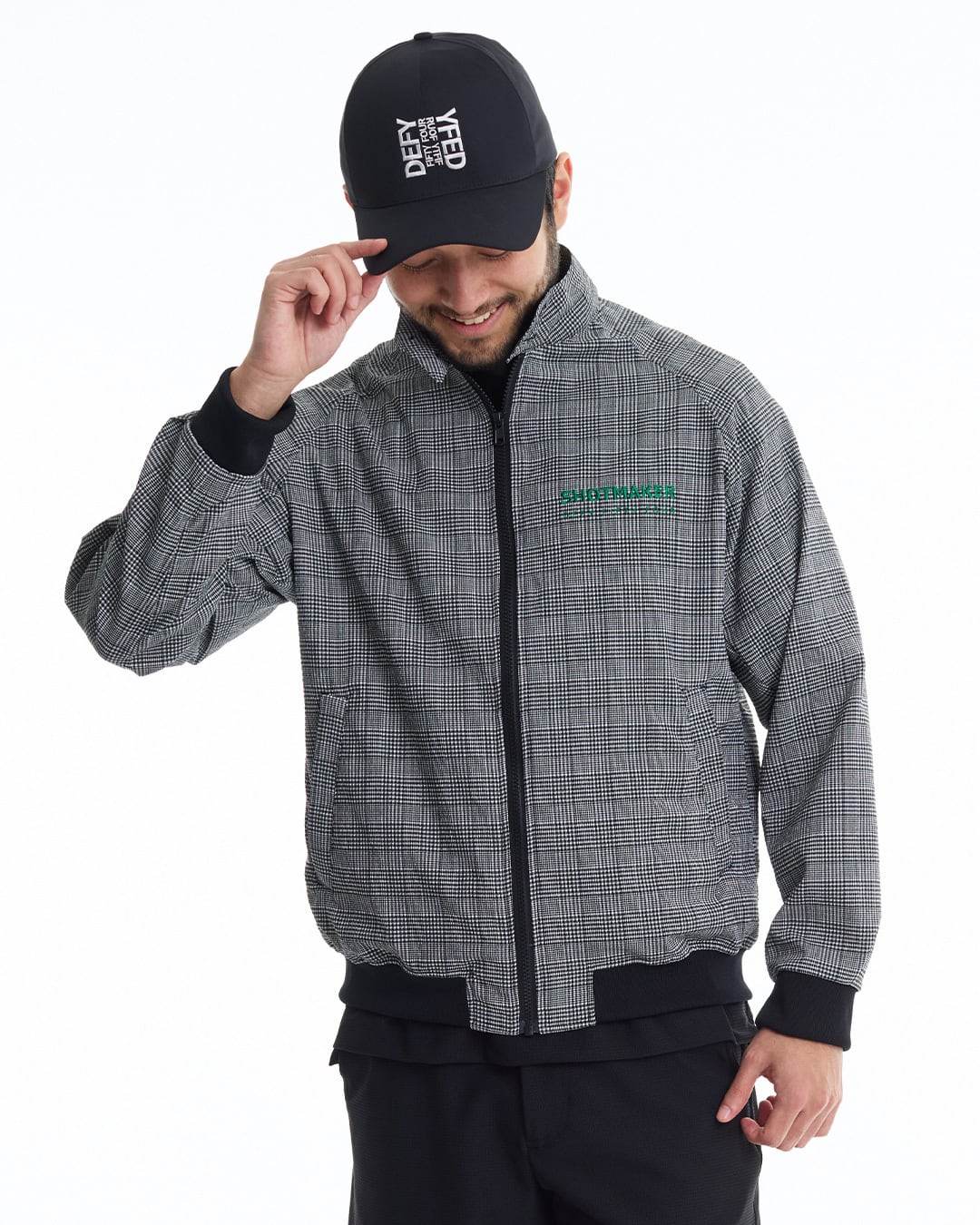 COOLMAX®インビスタ社商標(コアテクノロジーにより涼しくドライな着心地を提供しパフォーマンスを引き出す。)サッカー素材を使用した、グレンチェック・スイングトップ。クールマックスの機能性と凹凸感のあるサッカー素材を使用している為、快適な着心地。ゴルフ場への行き帰りはもちろん、プレイ時にも一枚あると便利な一着。セットアップカーゴショートパンツ(DFF1E11I)との着用により、より綺麗目なスタイルを提案。