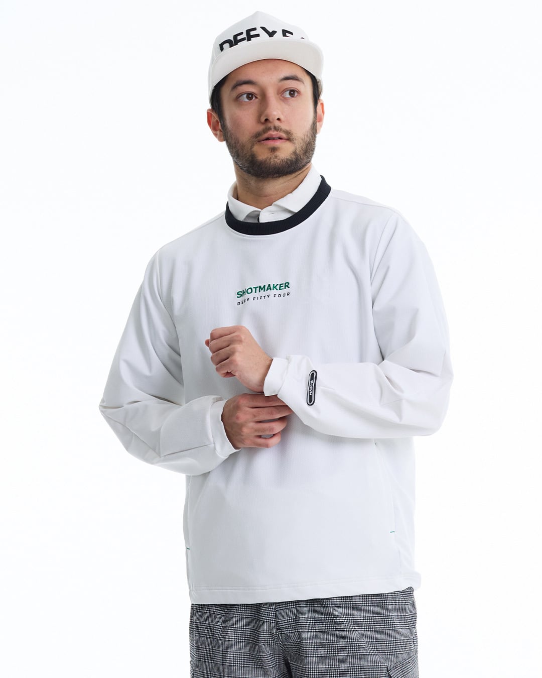 4方向への優れたストレッチ性と撥水性、透湿性、防シワ性、ウォッシャブルを持ち合わせた多機能機能素材(日本製)を使用した、一枚あると重宝する機能性プルオーバー。撥水加工は、自然界で分解されにくいフッ素化合物を一切使用しないCO撥水、PUには高品質ポリウレタン「ROICA®」を使用。朝や肌寒い日、雨天時などに一枚あると便利なプルオーバー。