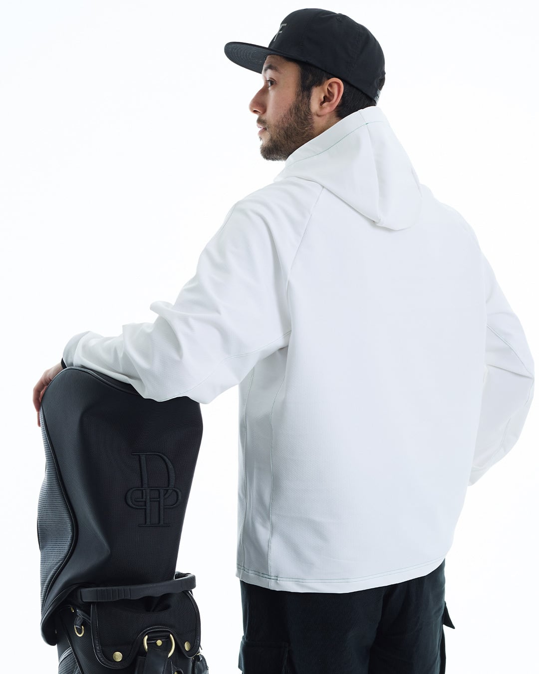4方向への優れたストレッチ性と撥水性、透湿性、防シワ性、ウォッシャブルを持ち合わせた多機能機能素材(日本製)を使用した、一枚あると重宝する機能性フロントジップフーディー。撥水加工は、自然界で分解されにくいフッ素化合物を一切使用しないCO撥水、PUには高品質ポリウレタン「ROICA®」を使用。朝や肌寒い日、雨天時などに一枚あると便利なプルオーバー。