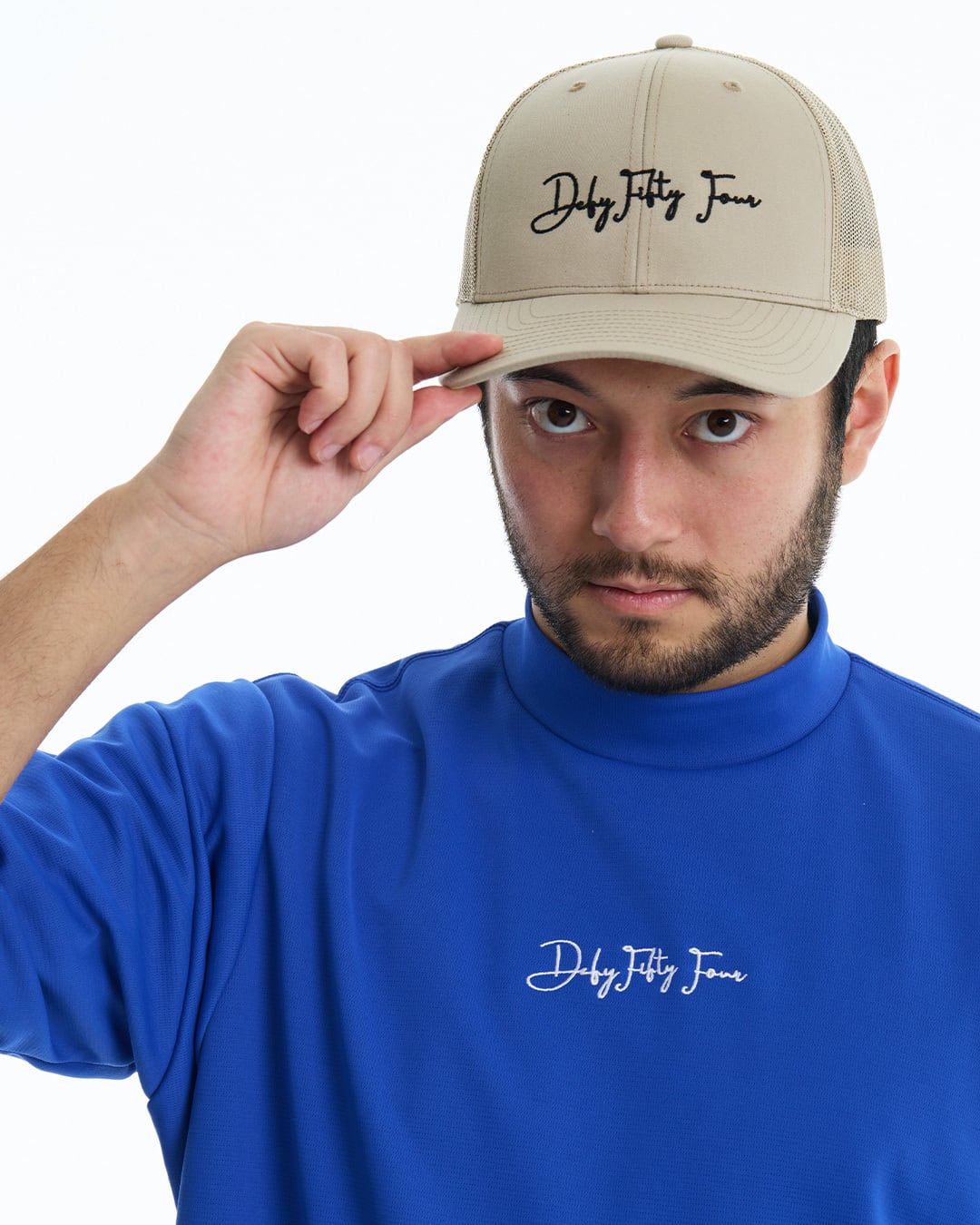 クラシックスタイルメッシュキャップ。6パネルカーブバイザー