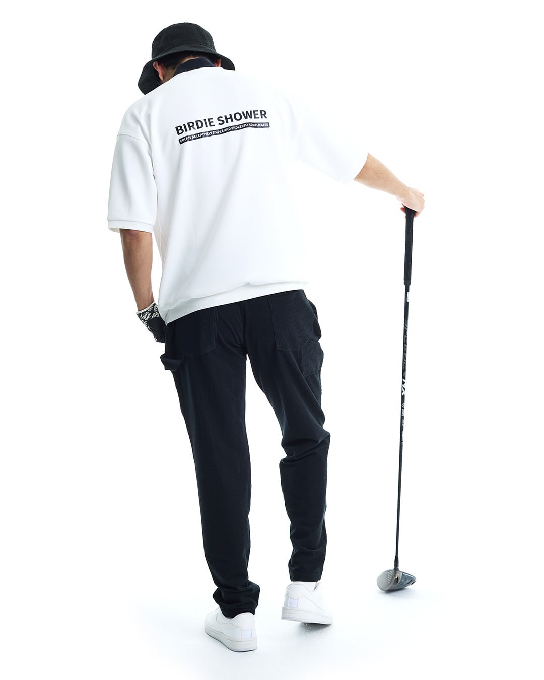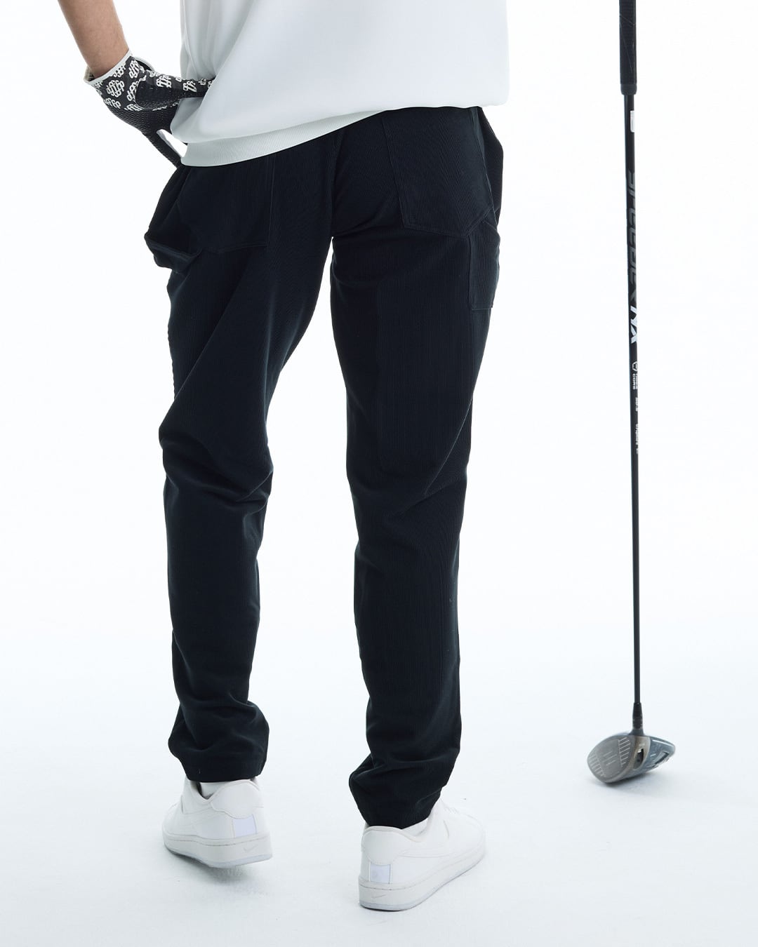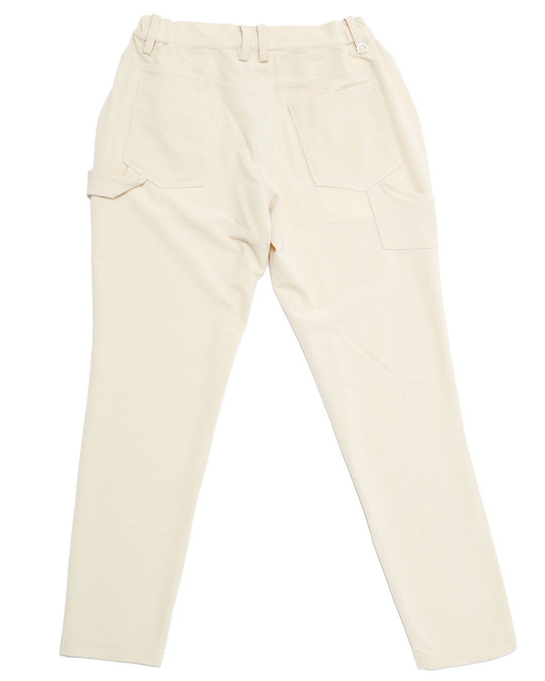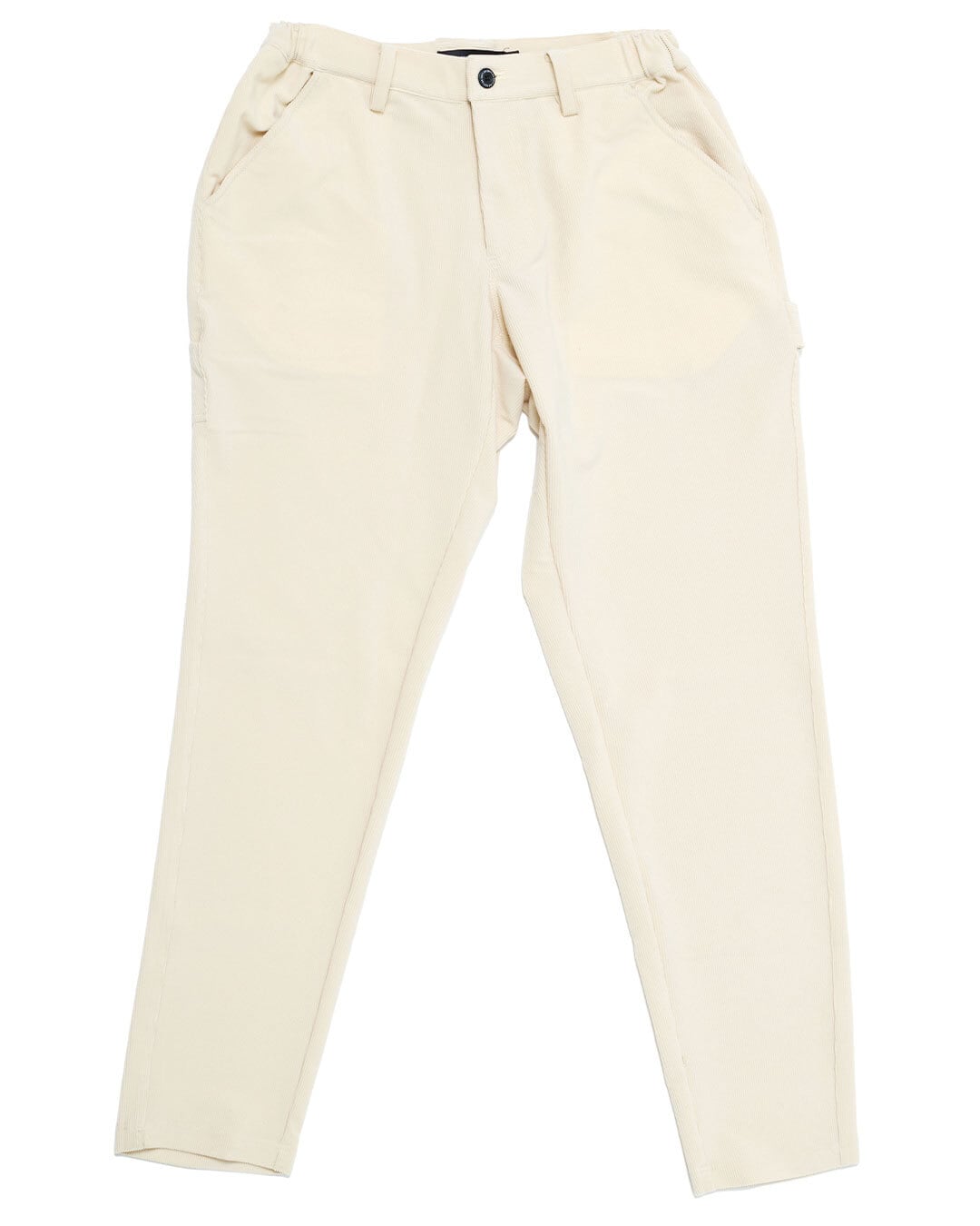 5WAY ストレッチ素材。トリコットニットで形成した新感覚の、コーデュロイ テーパードペインターパンツ。ウエスト部位ゴム使用の為、ストレスフリーに着用出来る一枚。ハイテンション素材の為、動きの妨げにならず快適な着心地のパンツ。