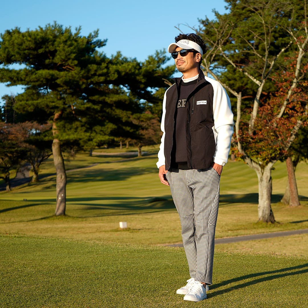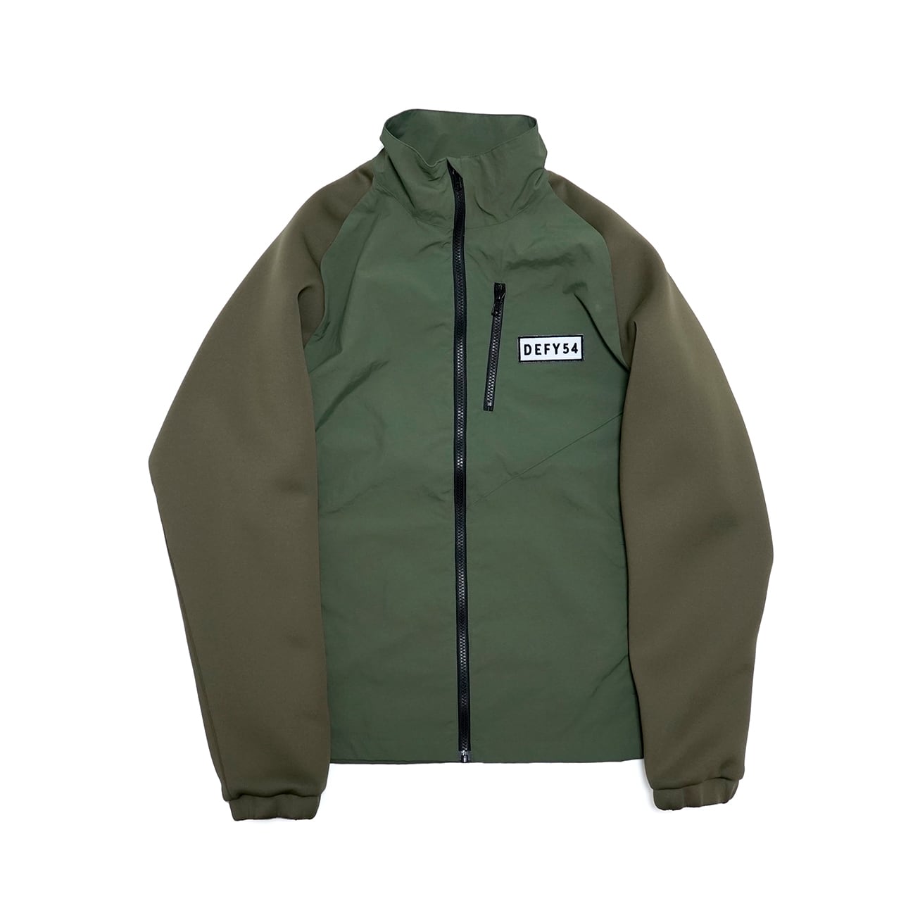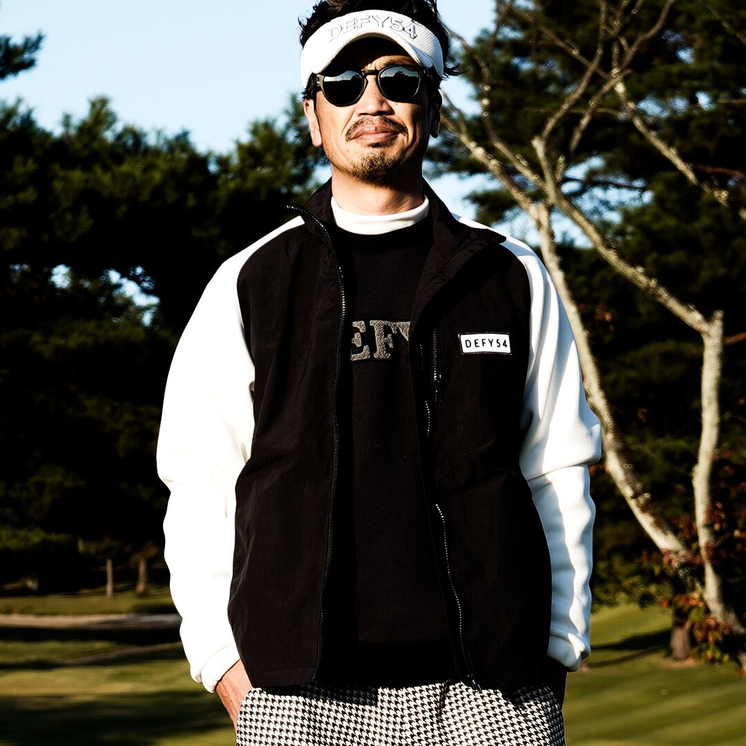 地球環境保全のための持続可能な取組として、原糸染色に至るまでこだわりぬいた次世代サスティナブル素材(オニベジ)と独特な肌触りのKNIT素材を組み合わせたアウター。