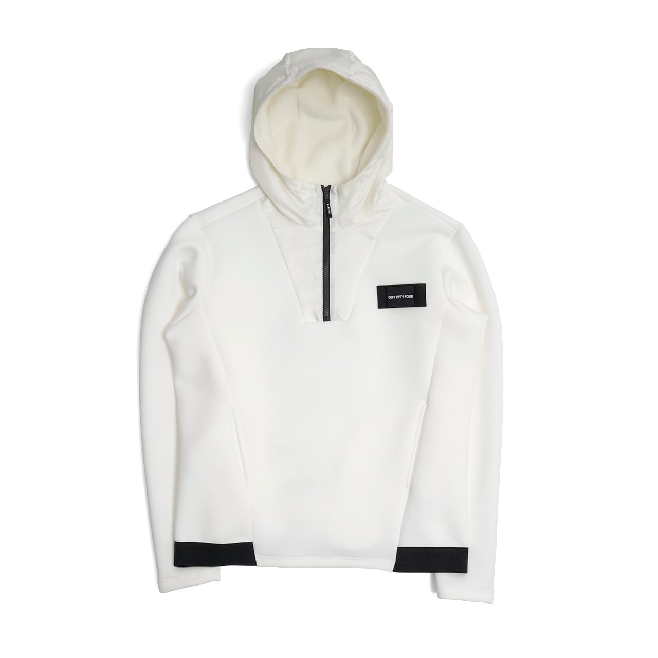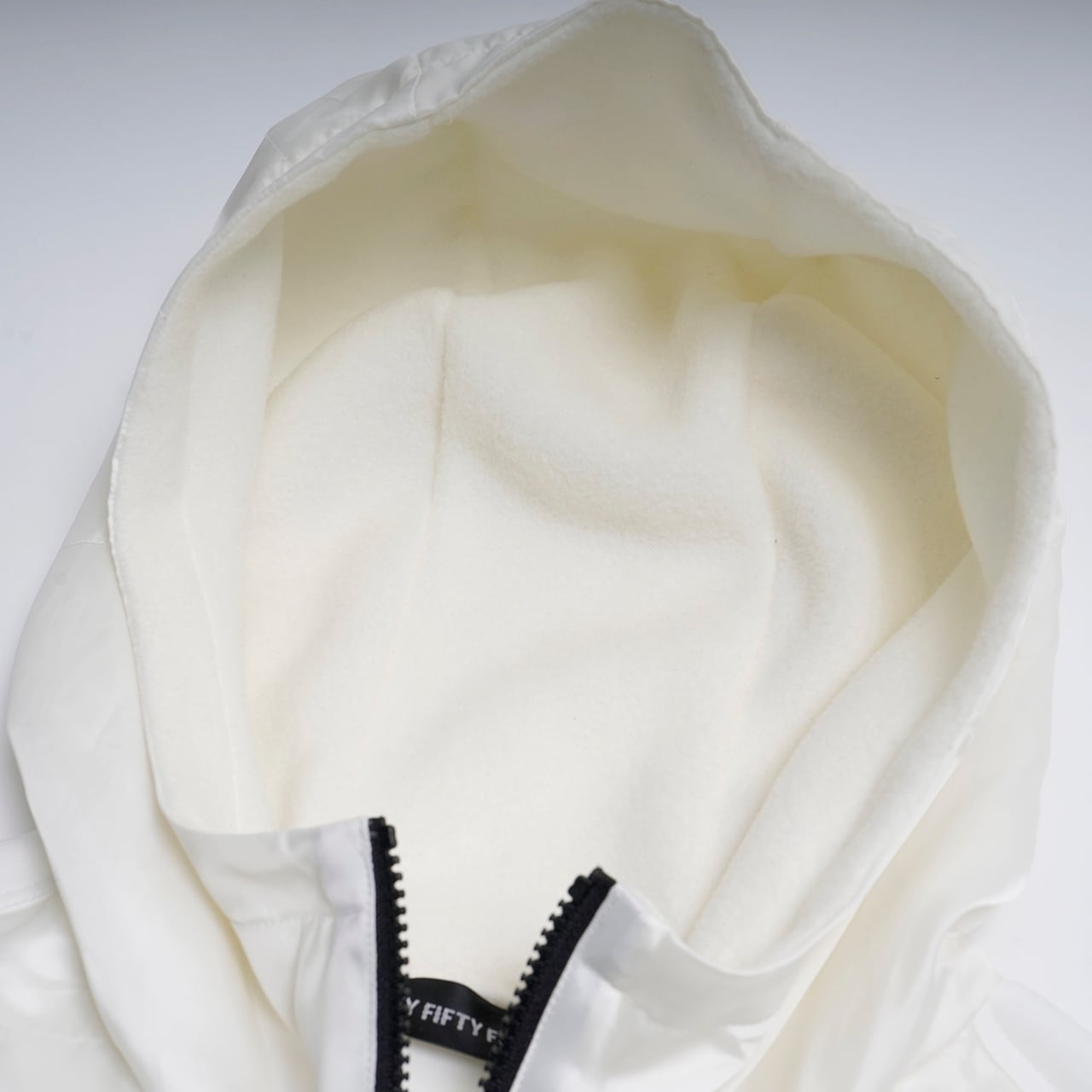 モチモチ感のあるダンボール素材に、フードにはECOフリース素材・ナイロンを使用した防寒プルオーバー。