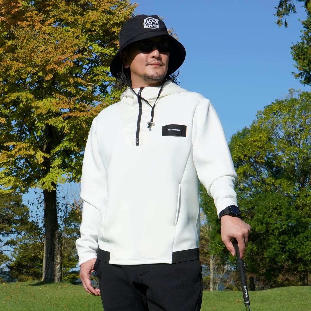 動きやすく、スポーツは勿論の事、デイリーウェアにも最適。インナー重ね着により、アウター要らずな一枚