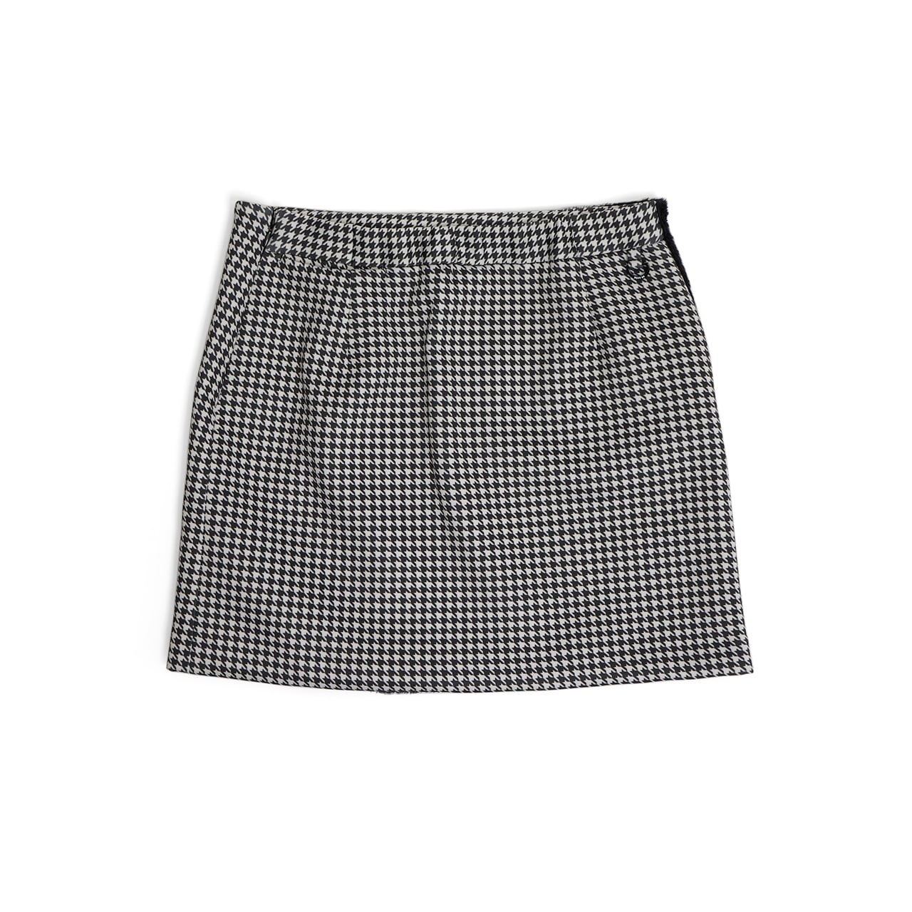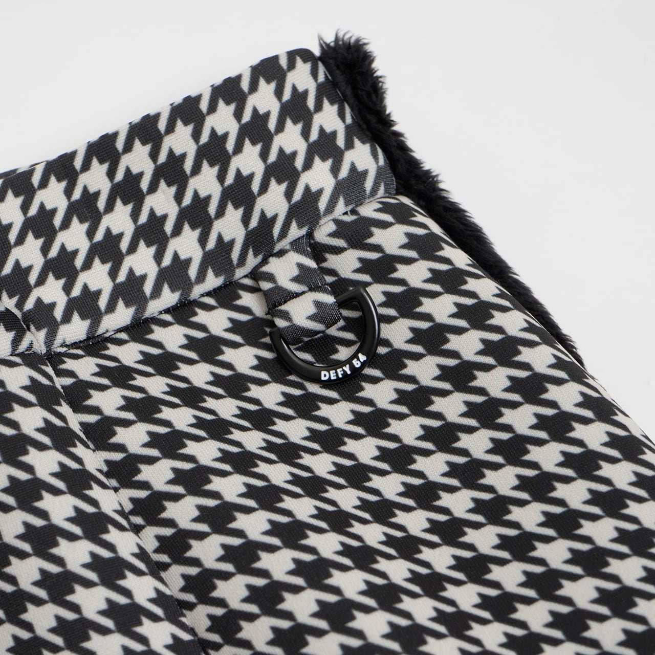 膨らみのあるダンボール素材に千鳥柄をプリント。軽量で温かみがある素材に、ECO マイクロファーを使用し女性らしさをプラスした一枚。セットアップトップスあり。