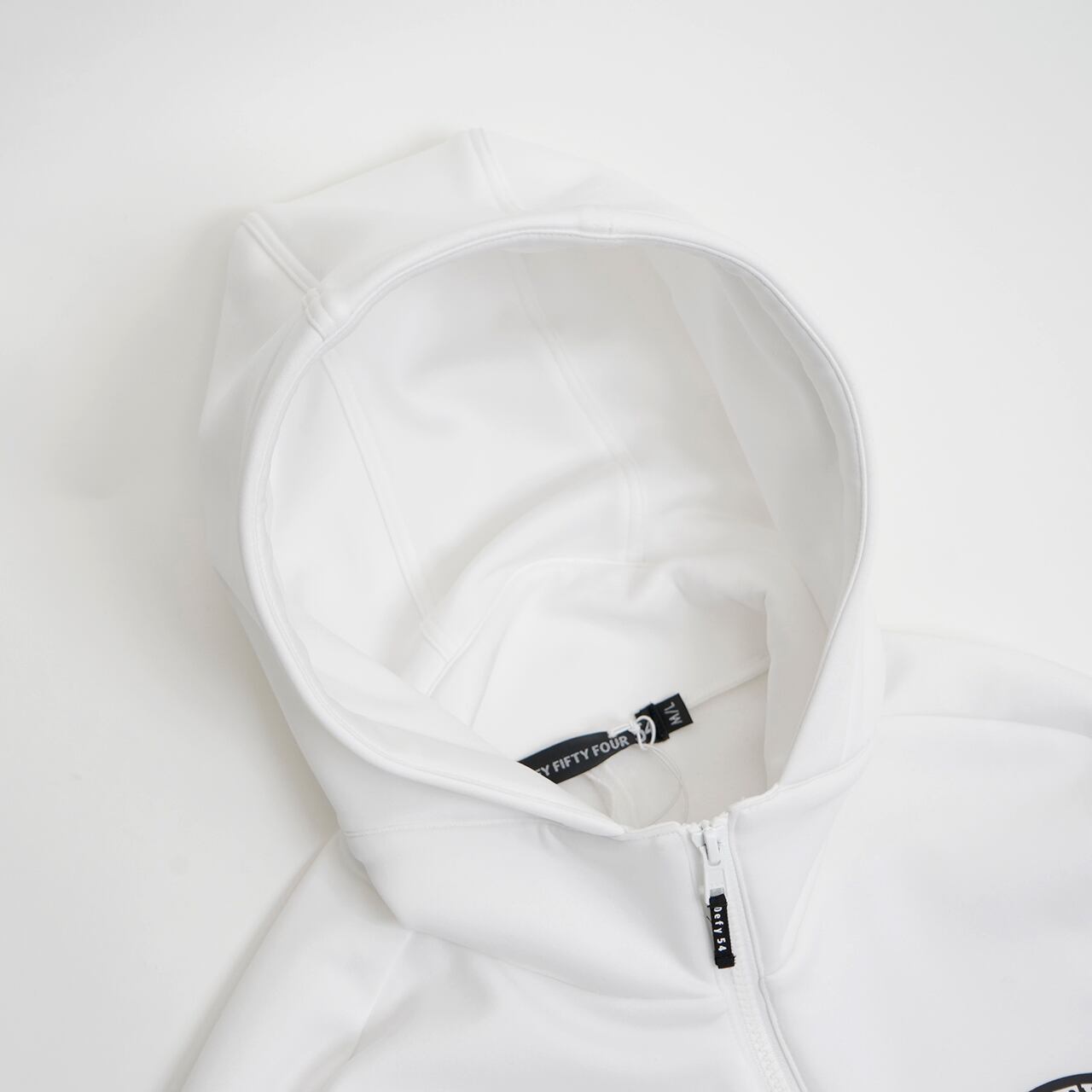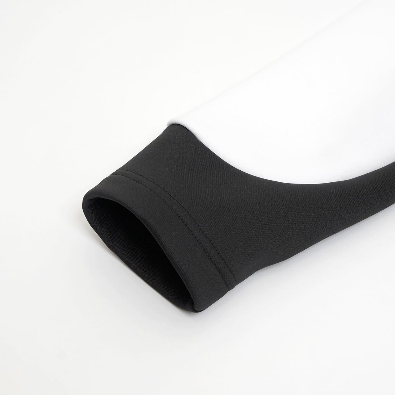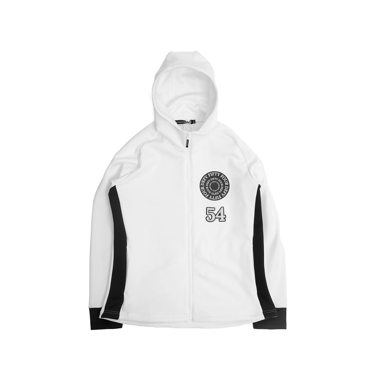 伸縮性のある片面フリース素材を使用した切替配色パーカー。とても動きやすく暖かいジャパンファブリック