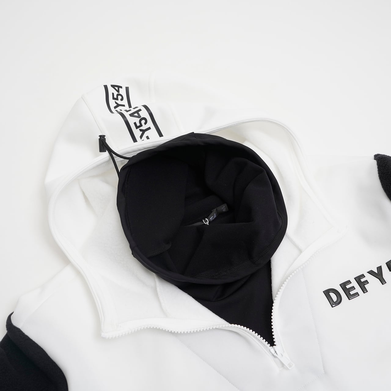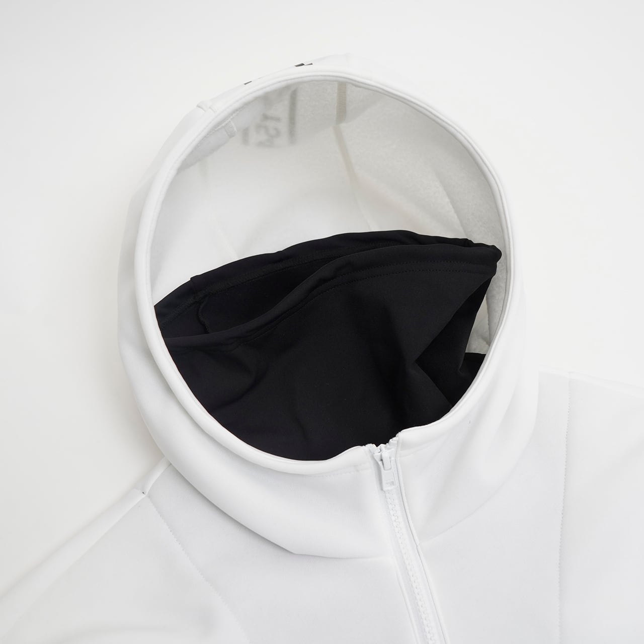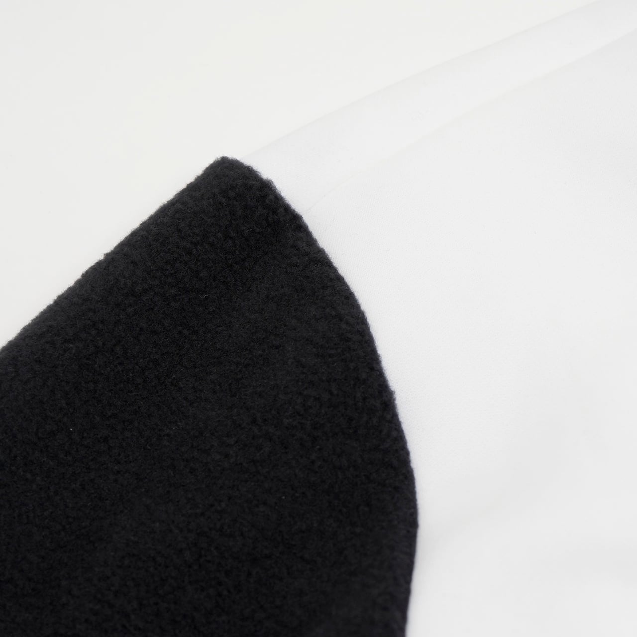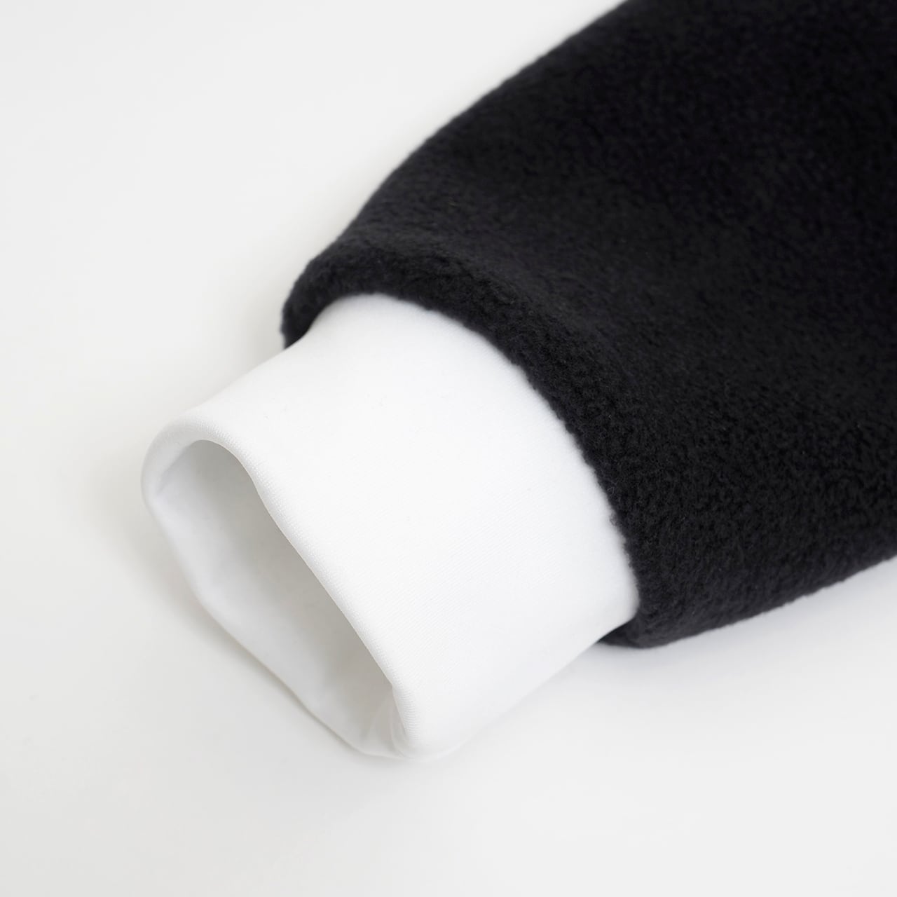 3種構造の特殊編みに加え、裏面に深い起毛を当てた肉厚軽量素材。40ゲージというハイゲージで、極限まで度目を詰めて編み込んだ素材の為、表面の美しい素材。ネックには伸縮性のある裏起毛を使い首元も温か。袖にはフリース素材を使用し、動きやすさに配慮した防寒に最適な一枚。