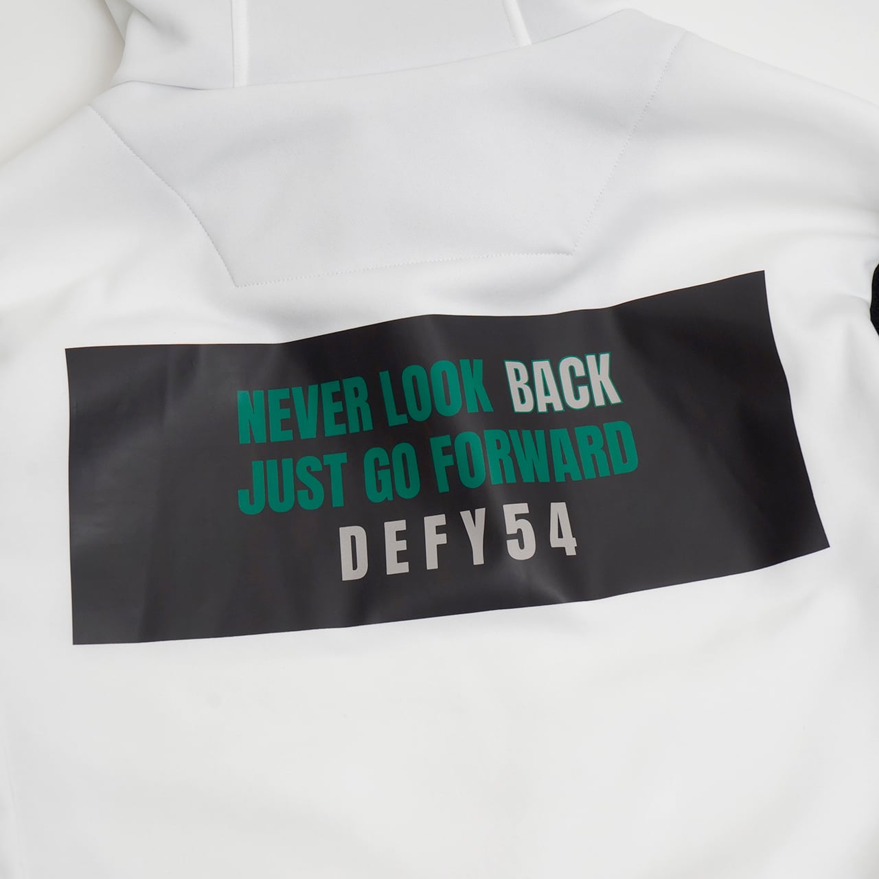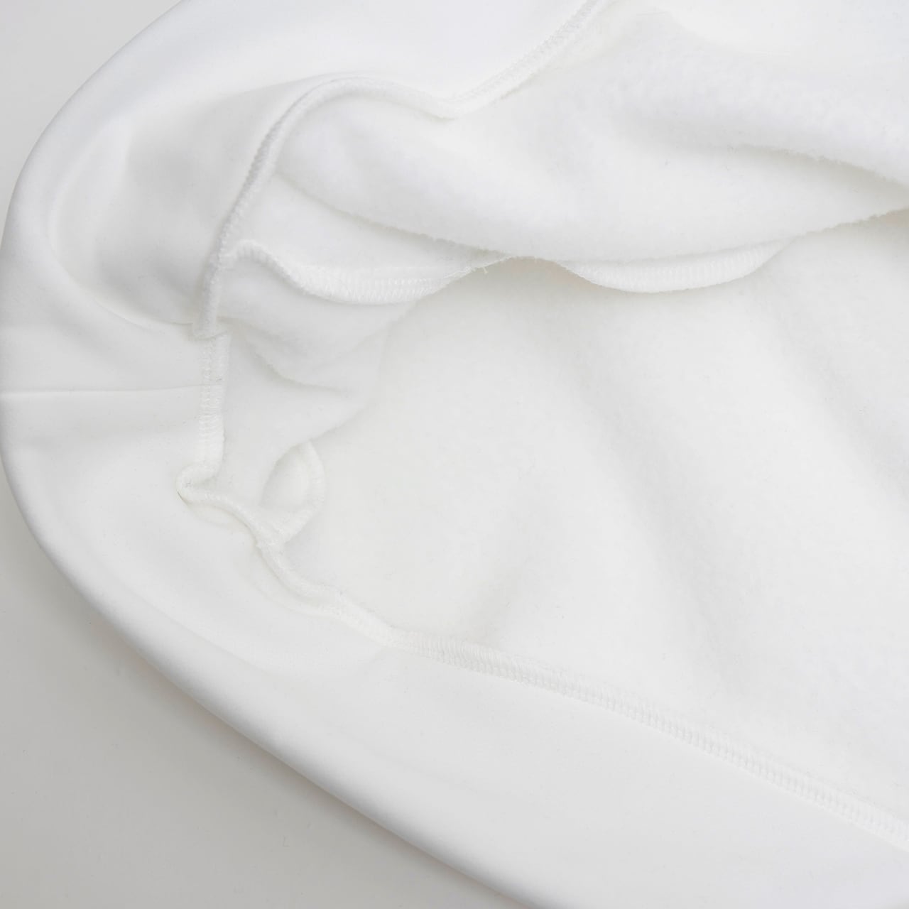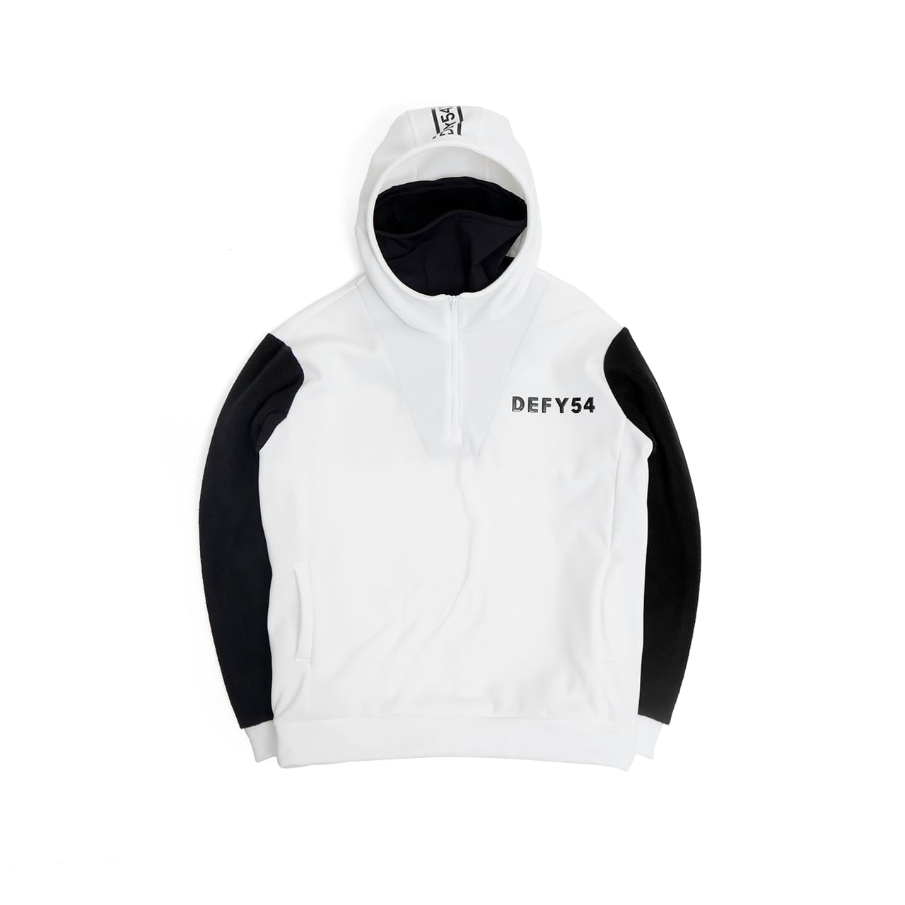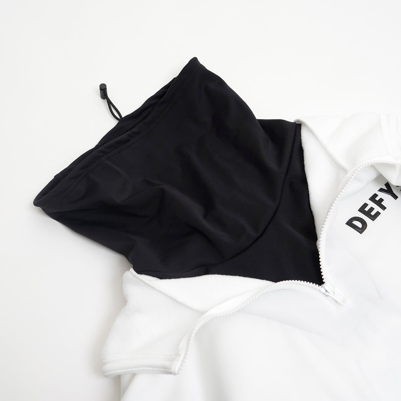 3種構造の特殊編みに加え、裏面に深い起毛を当てた肉厚軽量素材。40ゲージというハイゲージで、極限まで度目を詰めて編み込んだ素材の為、表面の美しい素材。ネックには伸縮性のある裏起毛を使い首元も温か。袖にはフリース素材を使用し、動きやすさに配慮した防寒に最適な一枚。
