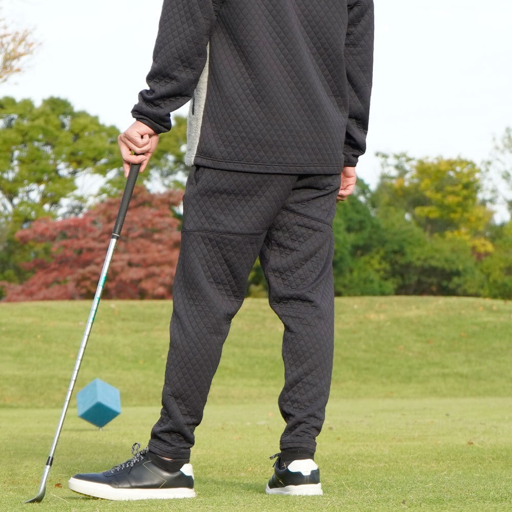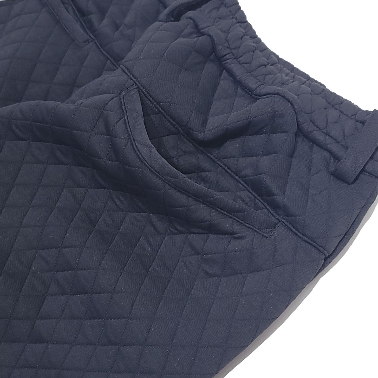ハイマルチポリエステルを使用したニットジャガードパンツ。特殊な編み方でダイヤ柄を表現。同素材使用のハイネックプルオーバーあり。セットアップ対応商品。日本製