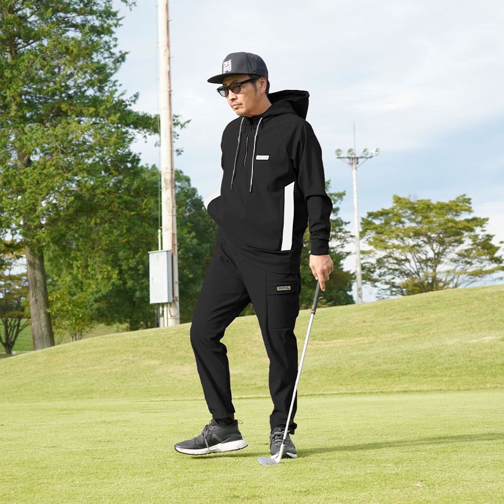 防風性・撥水性・保温性・3WAYストレッチを兼ね揃えたハイブリッド素材を使用。表面は撥水ハイゲージトリコットで、裏面は抜群の肌触りを持つフリースをボンディングした特殊機能素材。同素材トップスあり。セットアップ対応商品。日本製